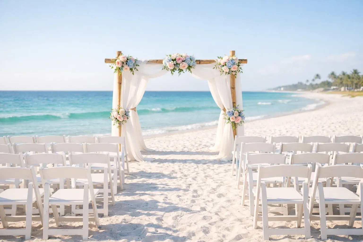Aqua Mint, we have the inventory and the expertise to execute it flawlessly. Our team handles all the setup and teardown, so you don't have to lift a finger on your wedding day. We take care of every chair, every piece of fabric, and every floral arrangement to ensure that when you walk onto that sand, you are entering a scene that is nothing short of magical.